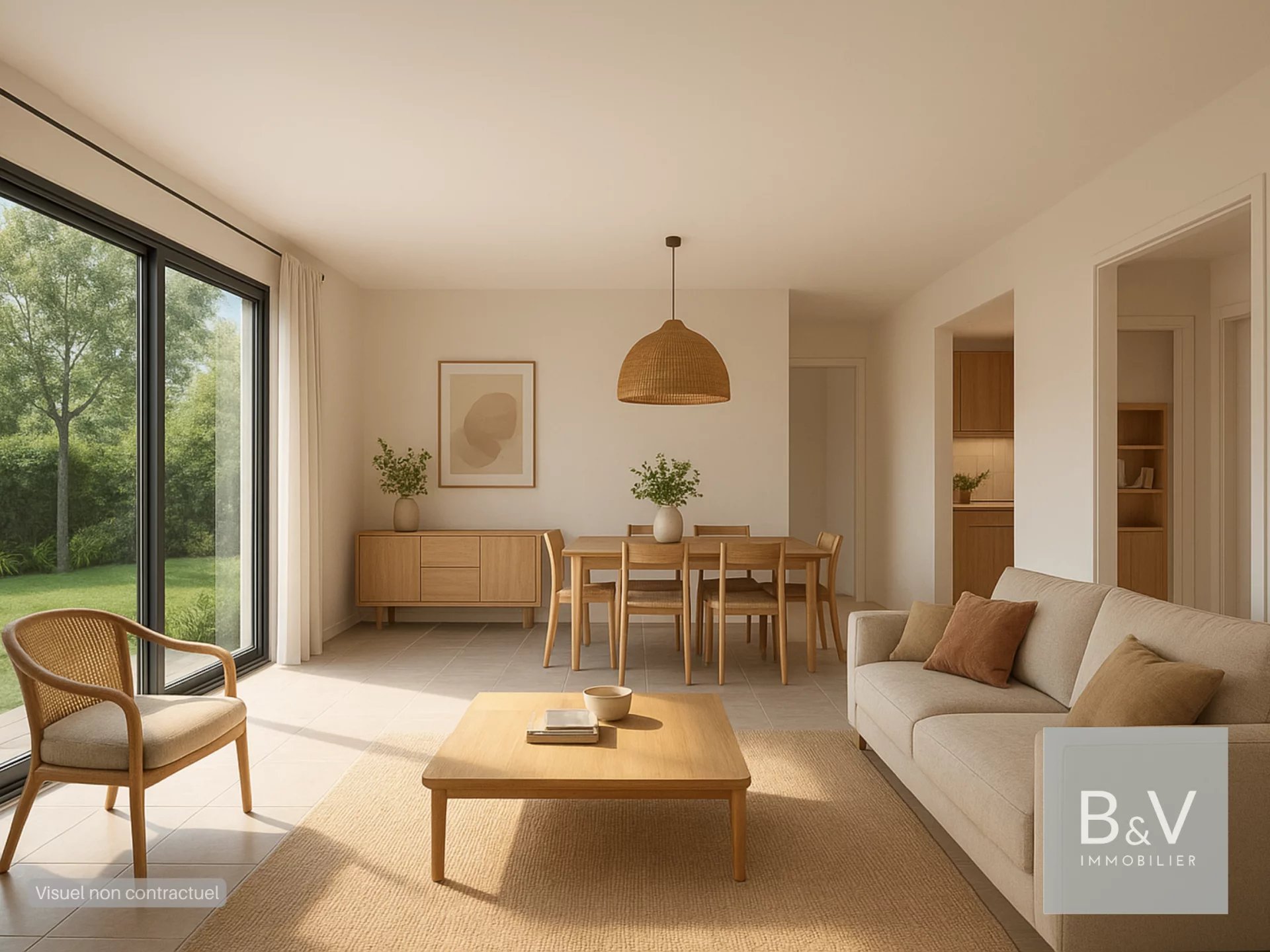 - Une pièce de vie spacieuse et lumineuse avec cuisine ouverte,